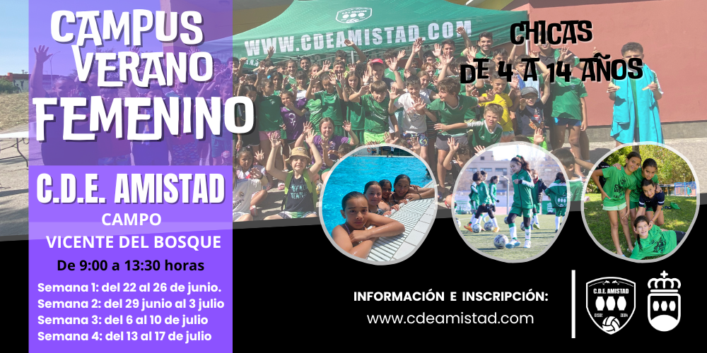 En el C.D.E. Amistad hemos preparado un campus pensado especialmente para chicas que aman el fútbol, donde podrán mejorar, divertirse y conocer a otras niñas con su misma afición.